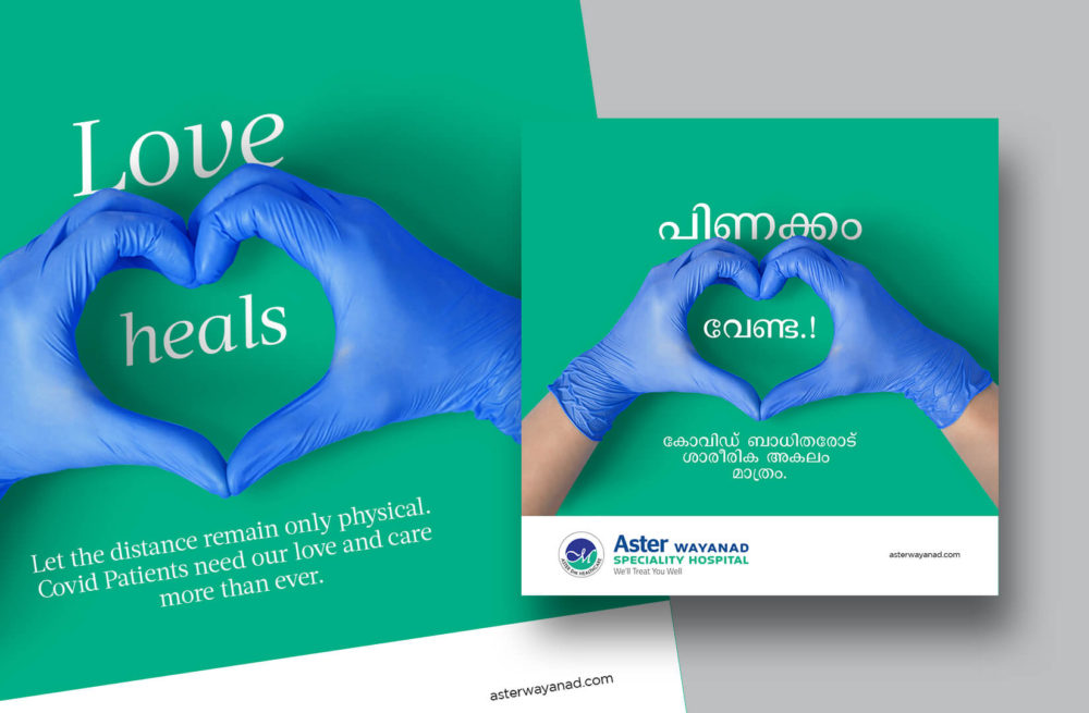 Social Media Campaign conceived for Aster Wayanad. The client wanted creatives to raise awareness among the public about COVID without being trite and aggressively preachy. And we came up with creatives exuding a sense of responsibility and positivity.